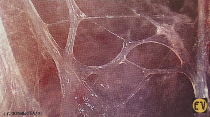 Observing the outermost layer we find a white rind, durable enough to protect the fragile fruit that lies beneath. This is what we consider the superficial layer of our connective tissue or what is known as the superficial fascia.  This layer surrounds our outermost, larger structures, lies beneath our skin and is intertwined with fatty tissues. It is the thickest and most durable layer for good reason.